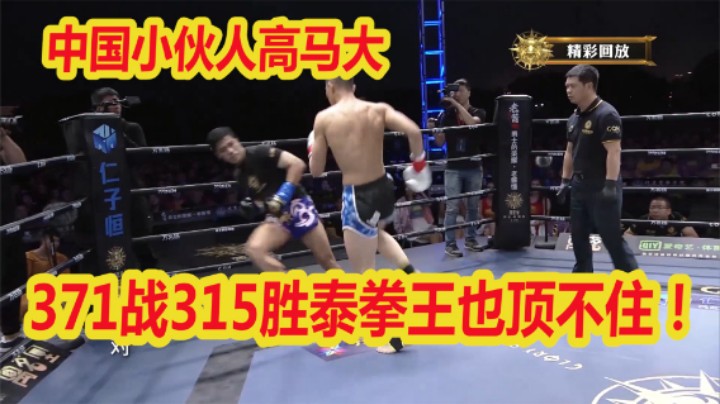 中国小伙跳起飞膝,371战315胜泰拳王根本顶不住,被KO栽出擂台