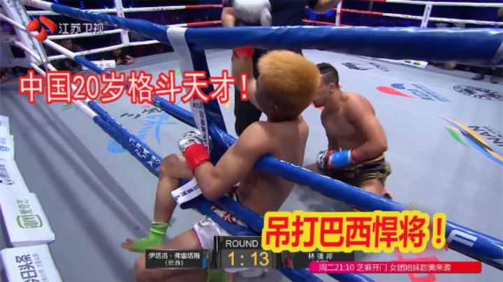 中国又出20岁天才拳手,左右开弓狂踢巴西猛将,横冲直撞翻出擂台