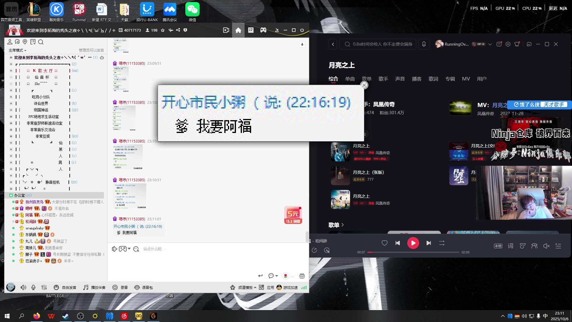 【2025-10-06 22点场】20岁天才歌手Running:国庆快乐!13号PGS~