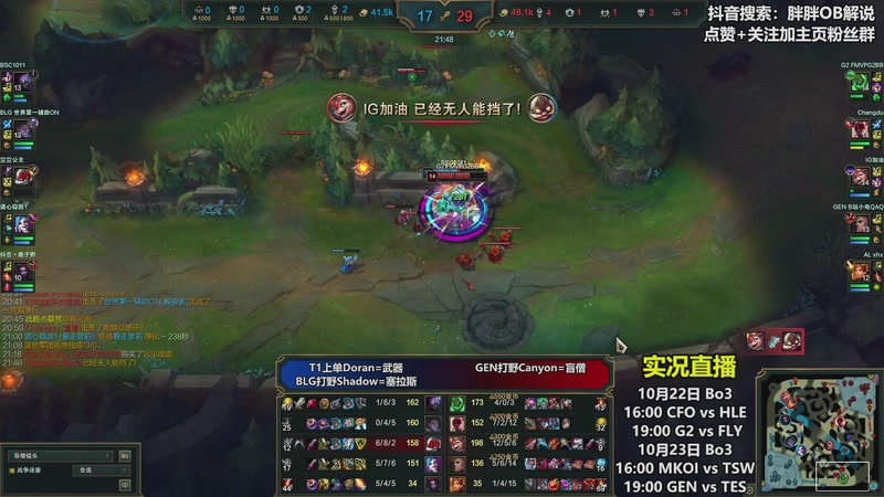 【2025-10-20 03点场】胖胖OB解说:胖胖OB:T1+IG+BLG峡谷之巅
