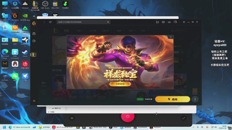 【2026-01-16 18点场】迷人的二叔丶:练一会儿溜了 明天巅峰赛了